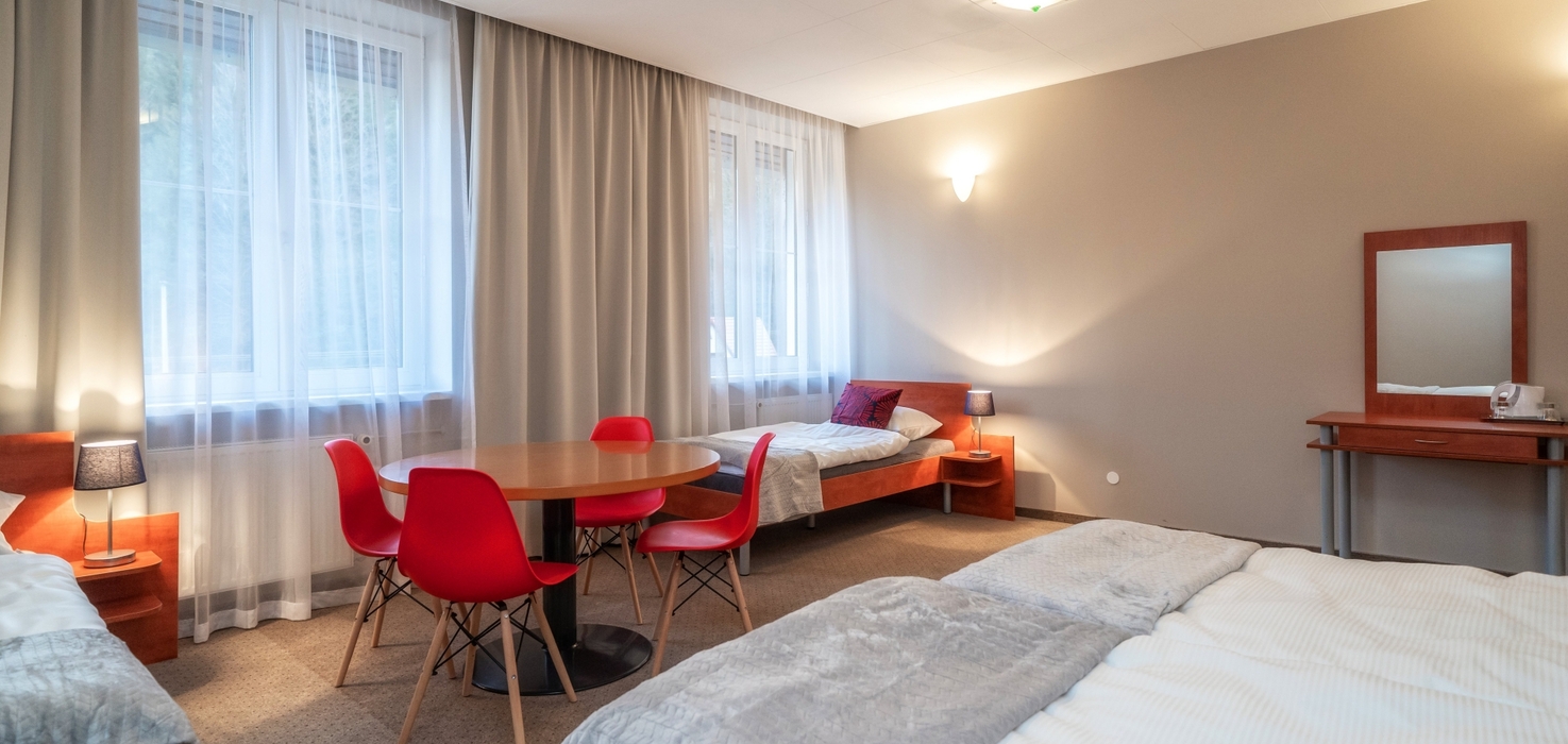 We offer 110 beds in 36 comfortable double, triple, family studios and apartments, and 36 beds in 9 studios with kitchenettes in Villa Gronie Ski&Bike